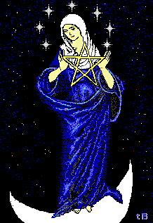 the Triple Goddess of the Moon--Maiden, Mother, and Crone. She is the innocent Maiden, filled with the